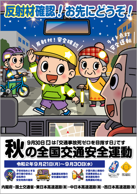 9月30日まで秋の全国交通安全運動を実施中です。