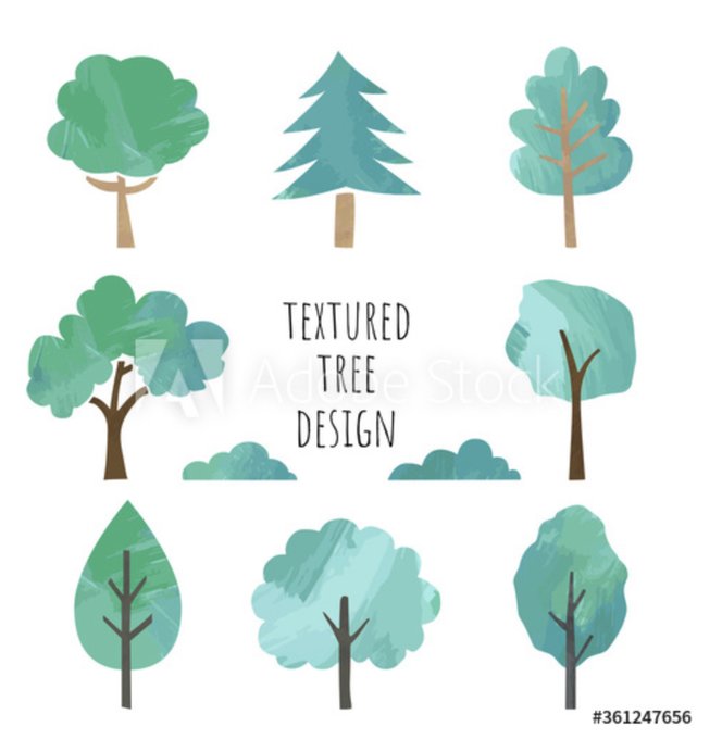 Adobe stock、PIXTAで切り絵風樹木セットのイラストがDL開始になりました。