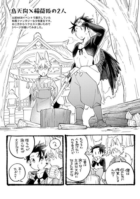 ・鴉天狗×稲荷狐な少年夏五の短い漫画