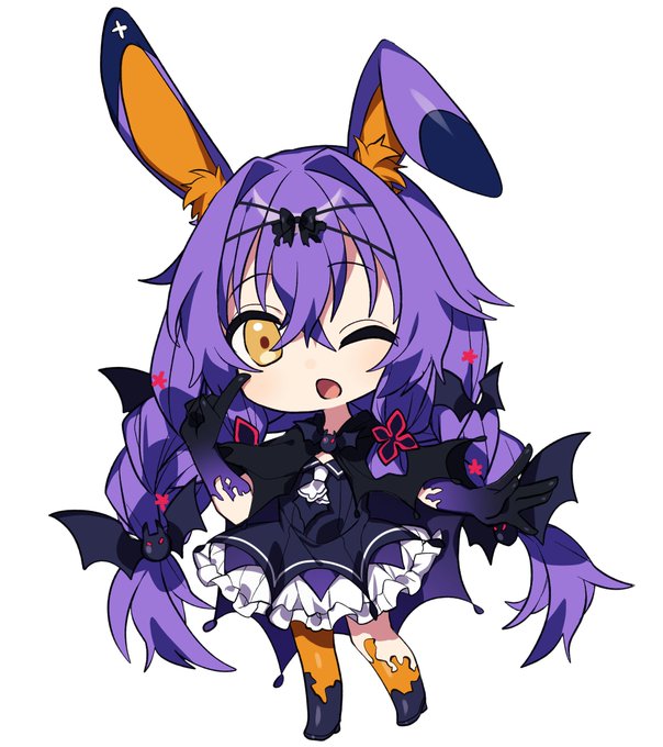いまさら感あるけど(!)空プラハロウィン企画で描いたコウモリテフちゃん(@Hoshi_Tefu )と死神万咲ちゃん(@sakiamaikas )です🎃
