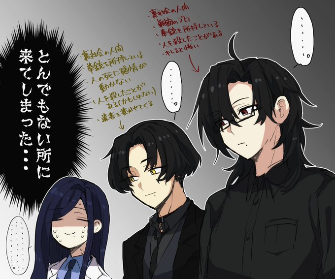 蛇ノ目と鴉越描き慣れたい🔫💻 #立谷TRPGメモ #故宅探索者