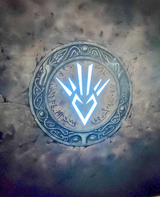 鎧の肩当てに骨竜の紋章が刻まれている