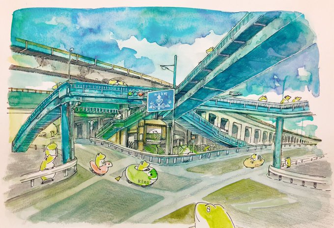 かえるさんを中心に街や古いものや植物が好きでのんびり描いてます