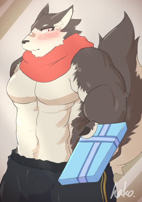 本日描いたもの! ホワイトデーにプレゼントを渡す水着マフラー狼獣人さん!! #箱ンサート #絵庭師 https://t.co/qPoYA6m83S