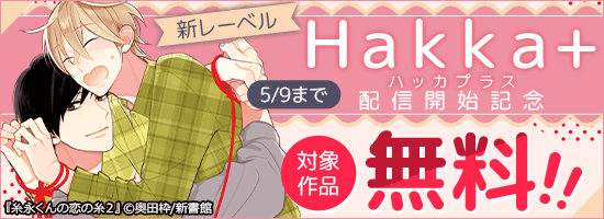 新書館から、電子書籍のBL新レーベル[ハッカプラス(Hakka+)]配信開始を記念し、奥田枠先生『糸永くんの恋の糸2』、長与エリ子先生『業務上過失ポルノ』、2作品の第1話を無料配信