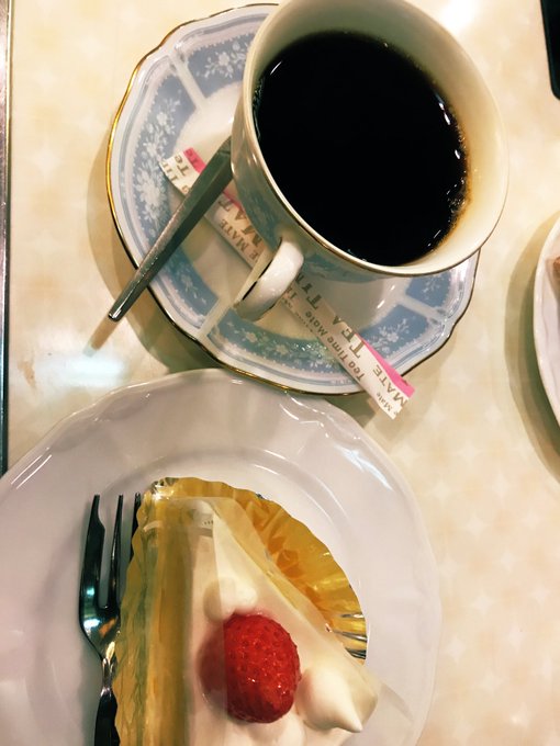 昭和テイスト喫茶店めぐり#5 《純喫茶アメリカン》TAMとレトロ喫茶めぐり。入り口見ただけでワクワクする昭和空間どどーん!照明内装が素晴らしく(^O^)シャンデリアのレトロ感。天井の意匠。この広さで全席喫煙okも驚き。ショートケーキセット注文🍰