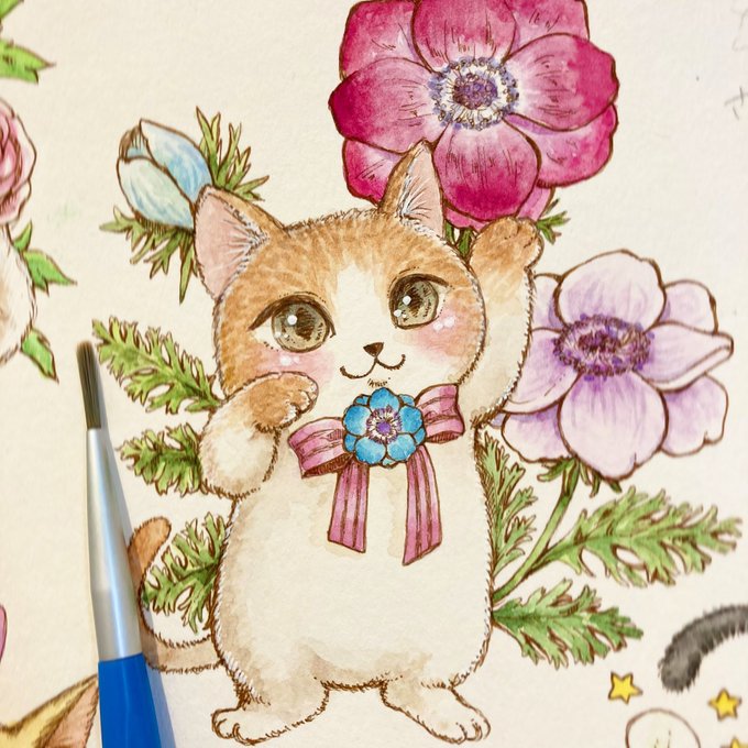 水彩で女の子や、最近では動物を描いています。作品を使って紙モノ雑貨の製作にも力をいれています😊
