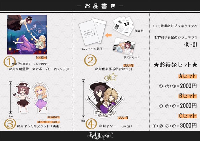 A2ポスターを持って行きます。CDお求めの方にプレゼント!姉妹サークルのCDでもOK🙆♀️