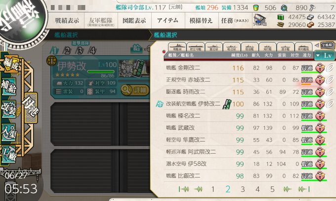結婚艦船289隻目は明石になりました。1-5に実装された時88周回って入手した最初の明石です