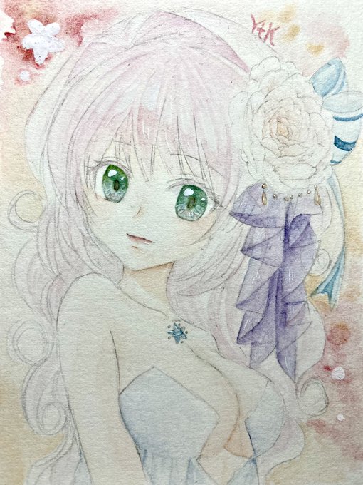 パール絵の具お迎えしたので水あさぎさん(@mizu_asagi_ )の線画お借りして塗らせていただきました♫