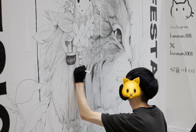 いつも通り大きな猫を描きます🐱