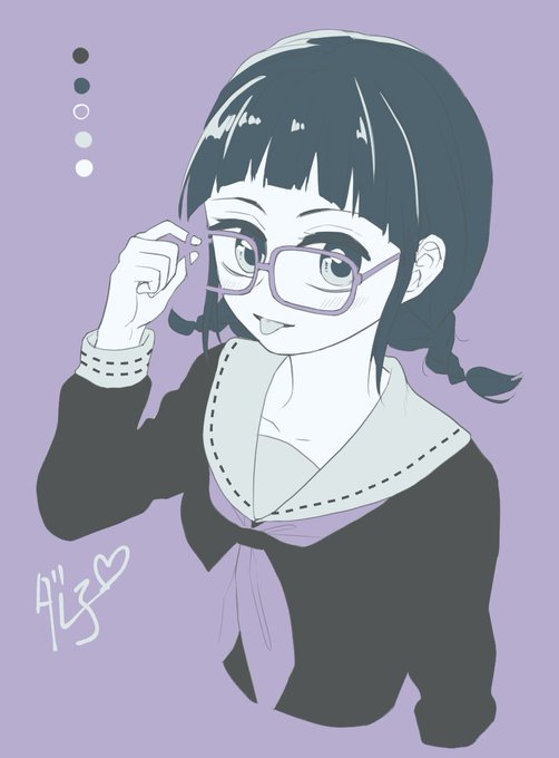 【再掲載】 「セーラー服」 「メガネ」 「舌を出す」 #一枚絵単語お題メーカー #ランダムカラーパレット