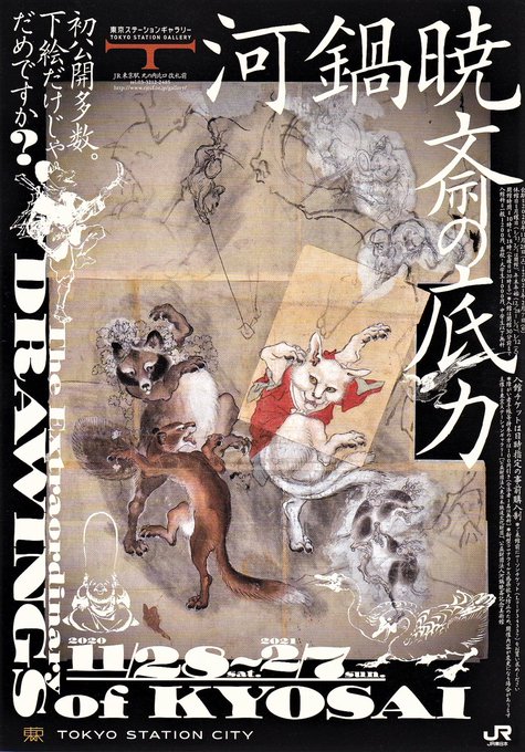 Weekly Gallary of Kyosai's Art Works 臨時6号 #河鍋暁斎 東京ステーションギャラリーで「河鍋暁斎の底力」展スタート(~2021年2月7日)。河鍋暁斎記念美術館設立の原点である河鍋家伝来の下絵・画稿を中心に絵手本等も含め、暁斎の筆遣いの息吹を間近に体感してみてはいかが。画像は同展チラシ。
