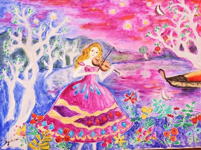 過去の絵です。#過去絵 ##過去絵を投げて絵を描いた気になろうキャンペーン #絵描き #絵描きさんとつながりたい #絵画 #油絵 #画家 #絵 #音楽 #バイオリン #アート #いい色の日 #絵画好きな人と繋がりたい