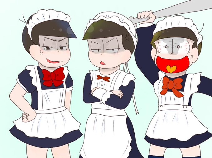 はい、見事に被ったので罰ゲームの被らなかったトリオ松の女装(無理やりやらされてる)です