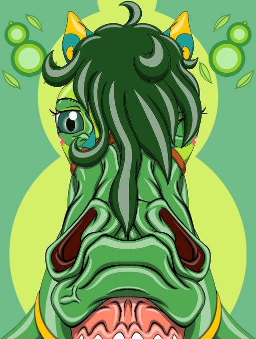 好きな性癖発表ミドラゴン 鼻筋の通った長いマズル (=*Φ人Φ=)💚🐲 #ケモノ #メスケモ #緑猫 #ミドラ #マズル #好きな性癖発表ドラゴン #猫獣人 #緑犬 #緑馬 (1/1)