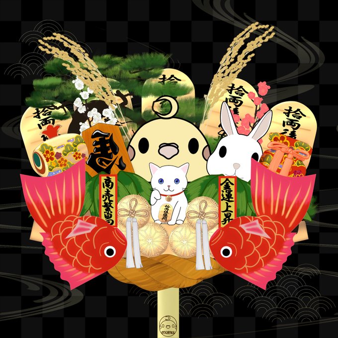 @waraigoe_NFT @monflowers_nft オカメインコが作った縁起熊手のご紹介です。