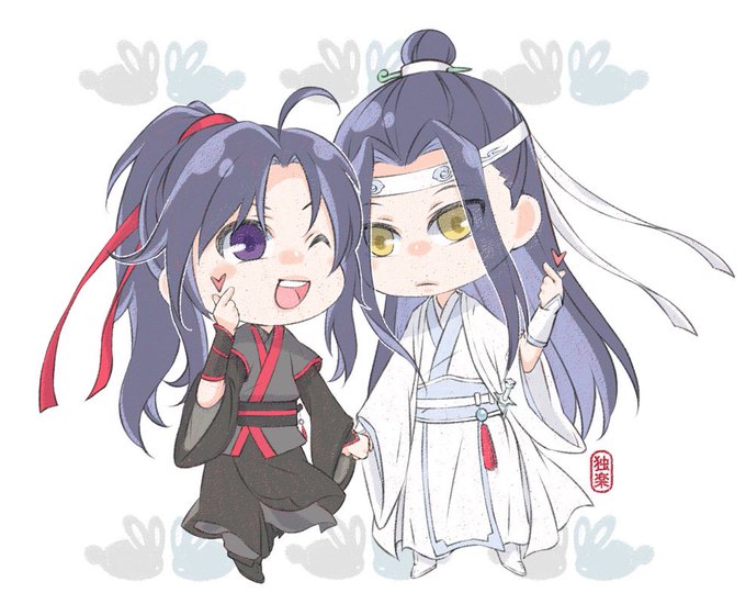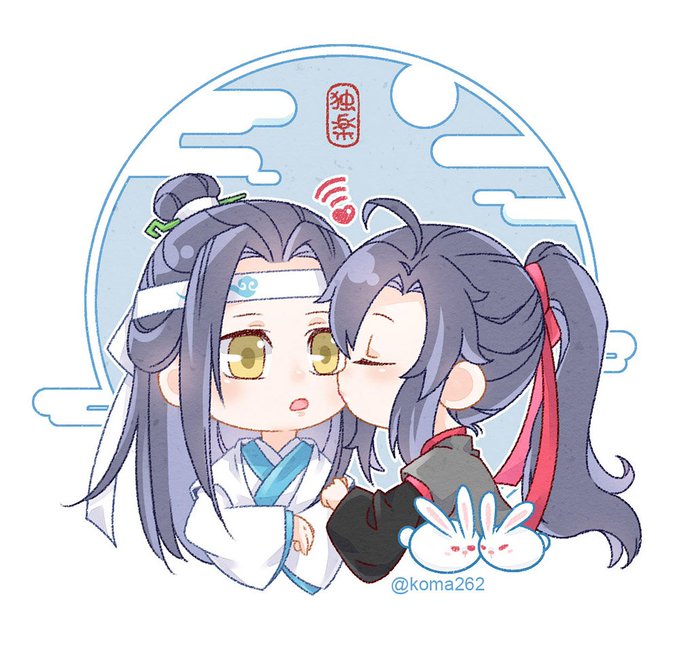 #繪GAME #魔道祖師 #忘羡 @w8n7cl6963 的啾啾忘羨完成了!! 還是畫Q版順手~(你振作點!! 然後我想畫兔子..所以..改了比較簡單..花圈好複雜(诶你😳