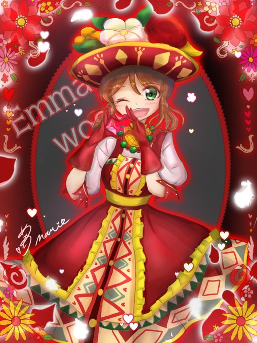 羅刹緋春の衣装ゲットできたんうれしいんでお絵かき~~!!!エマちゃんすこ~~~~!!!!!ずっとまってたよ~~~~~~~~!!!!!!
