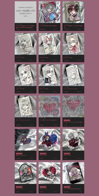 美少年展-final-販売していた、ハート型カードなどのグッズ、新規のドローイング・原画も販売します🎀