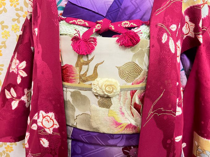 #今日のトルソーさん に手書き風の薔薇が描かれた絵羽織を合わせました🌹