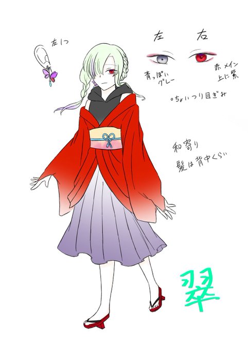 #翠彩雨 軽く設定?描きました 髪色は2枚目の方が参考になる