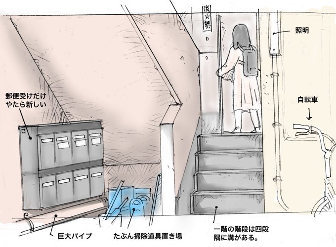 ずっと止まってた背景模写練 折角アドバイスをもらったのに全然実践できてませんでした……😓 今回は線と塗りを分離してみた #背景画 #模写