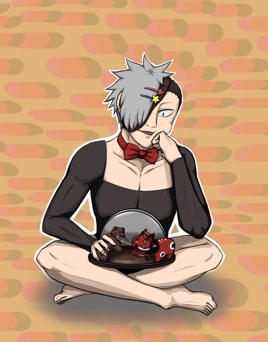 上半身はカマキリの顔+胸をイメージした服ですが、カマキリの顔に当たる部分を「塗らなかったらエチチだな」と咄嗟に思いついた結果、胸空きになりました♡