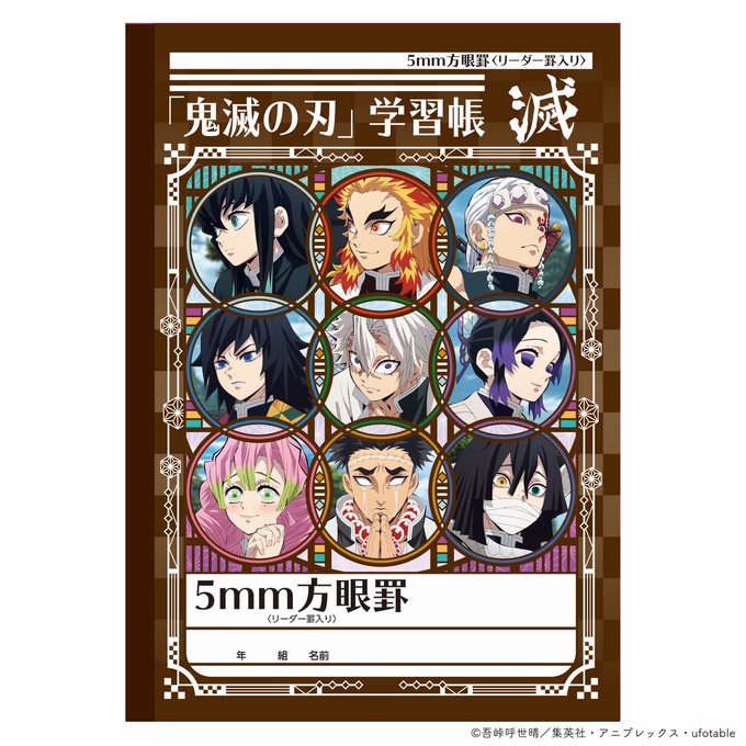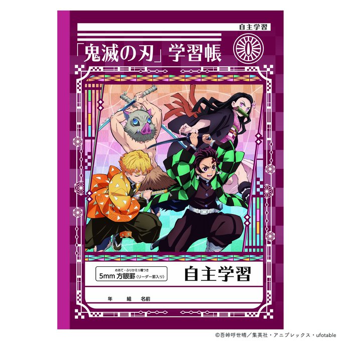 アニメ「鬼滅の刃」の文具シリーズが発売中!5mm方眼罫、かんじれんしゅうちょう84字、連絡帳14行、自主学習、自由帳