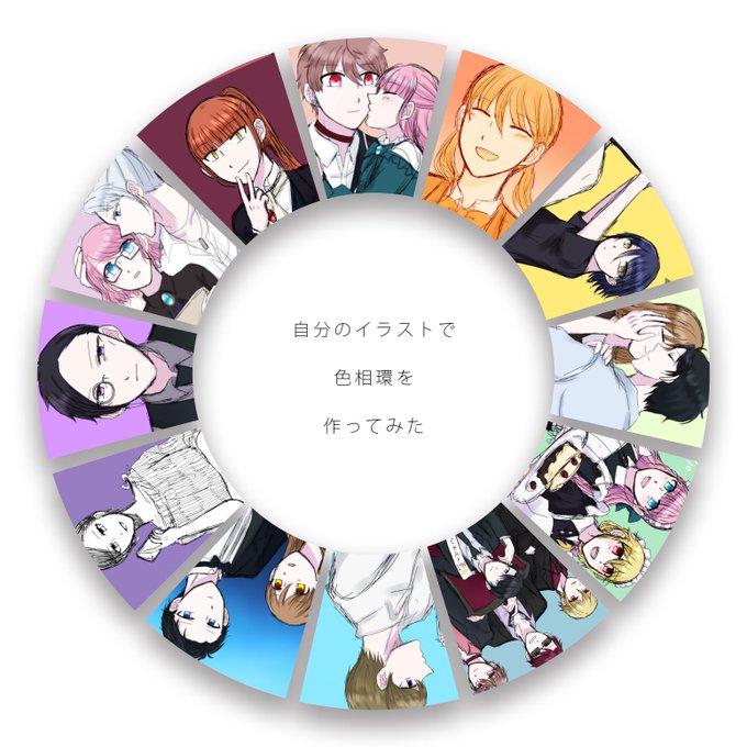 #自分のイラストで色相環を作ってみた