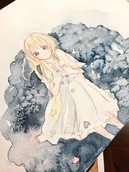 青の使い方と水彩ぽく描いてるのと暖色加工が好みの感じです❤️