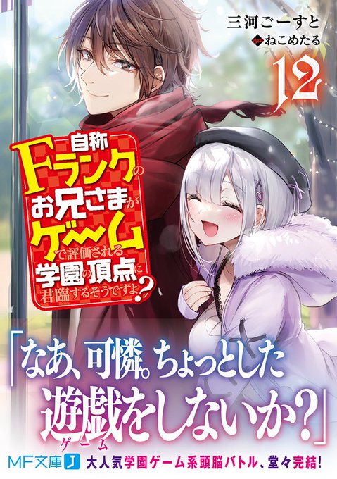 三河ごーすと×ねこめたるで贈る『自称Fランクのお兄さまがゲームで評価される学園の頂点に君臨するそうですよ?10』好評発売中!