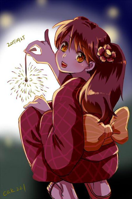 毎回遅刻すみません… @kancolle_1draw 浴衣の龍驤ちゃんと花火や〜〜〜! #艦これ版深夜の真剣お絵描き60分一本勝負