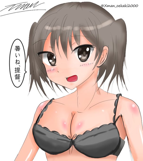 暑さにだらける提督を水着姿で激励してくる朝風描いてみました。