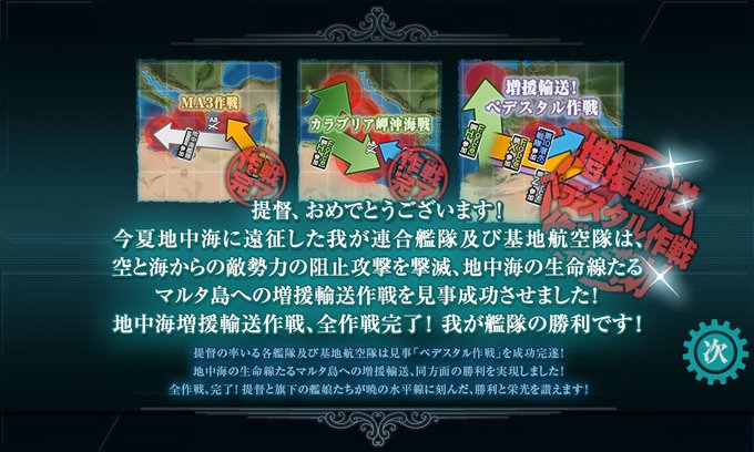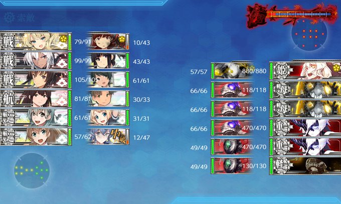 道中突破重視で輸送装備をあまり積み込まない編成で攻略したら出撃回数がかなり多くなってしまった感じ(道中安定と輸送装備量のバランスを考えるのは難しい)、道中大破しても単艦退避できるのでボス到達率は良かったです