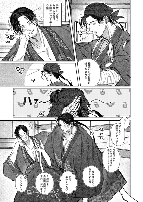 HARU2025.幕末黙志録で芝さん(@Shiba_rakugak1)のスペースに置かせていただいていた鷹&梟の片+主漫画です