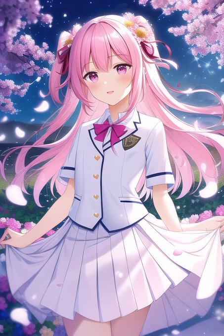 背景も花びら舞う花畑!素晴らしきこの世界!