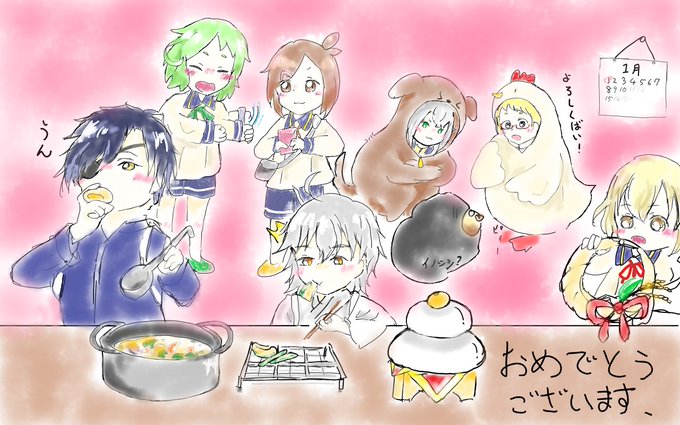 #とうらぶ #刀剣乱舞 #あけましておめでとう #燭台切光忠 #毛利十四郎 #乱藤四郎 #鶴丸国永 今年も花丸の日和に!