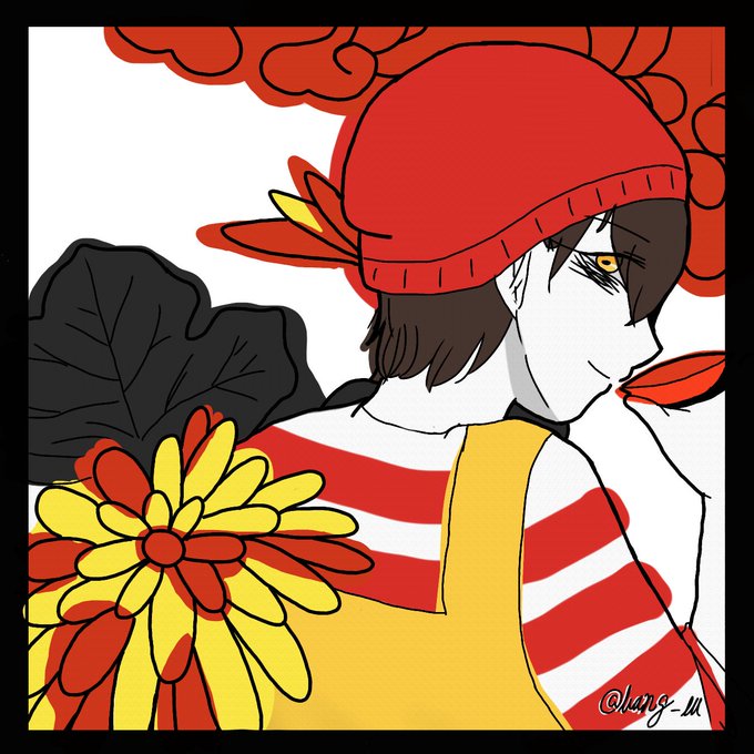#花札の主役は我々だ シャオニキで菊に盃 有能で無能な化け札なのと9月札であることからシャオちゃんを描かせていただきました。楽しかったです( ˇωˇ )