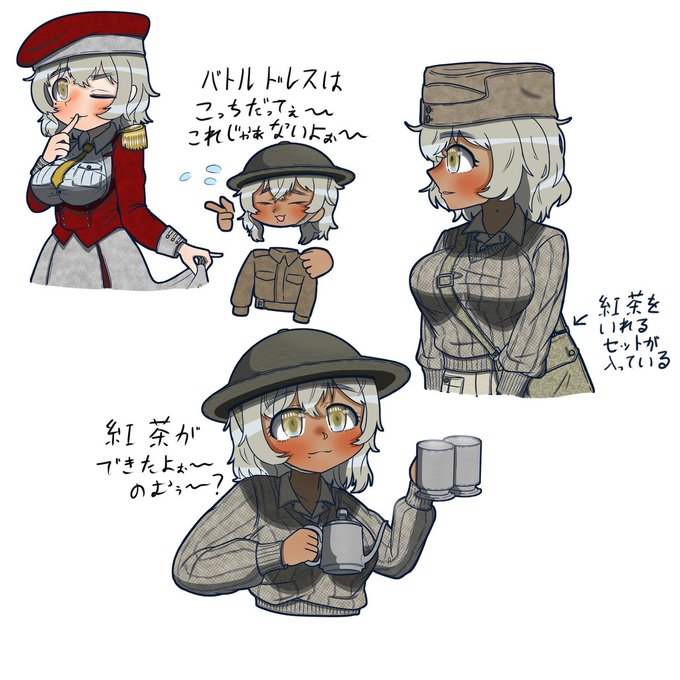 イギリス第八軍の気弱ガール、レズピレーターバックを紅茶道具入れにしている、愛銃はステンガンMK2