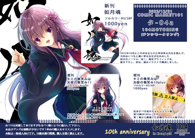 C101お品書きになります。今回の新刊はいつもと違い、10月にこの世を去った草田草太先生を偲んでノーマル、改二、限定グラを描き下ろし、初出、過去イラストで構成しました。その他既刊、カンタイムスメ2既刊グッズ頒布を頒布します。