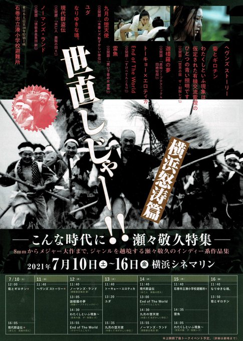 「世直しじゃー!!こんな時代に #瀬々敬久 特集【横浜怒涛篇】」#横浜シネマリン 7/10(土)~1週間限定開催決定!情報をアップしました!https://t.co/NUxQcwWhcW