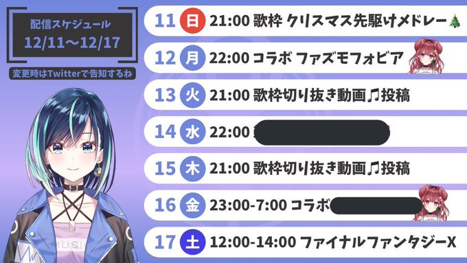 🎵スケジュール 12/11~💝