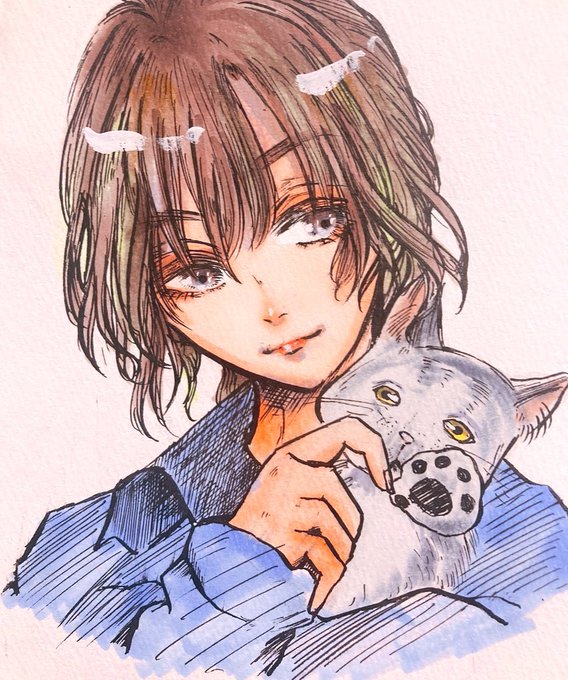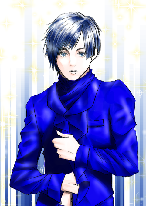 モデルは声優の蒼井翔太くん。ネットの画像を参考にしました。白黒っぽい写真の方が灰色具合分かるかと思ったんだよね…そして多分青使ったのはモデルの名前に感化されたんだと思うww https://t.co/bCO91VT0pB