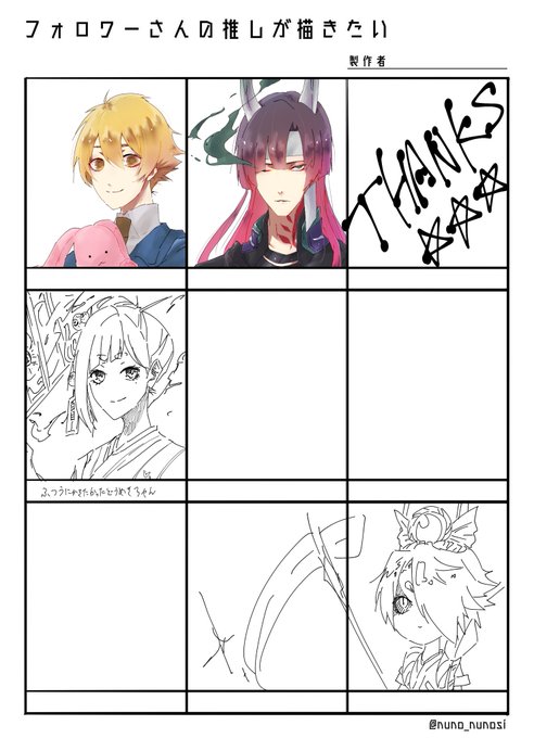 すんません、大変お待たせ致しました………………………………色々抜けてるけど残りのハニー先輩と蒼風一目連です…………(‘、3_ヽ)_ あと何か個人的に描きたかったやつです………… リクエストありがとうございました〜!