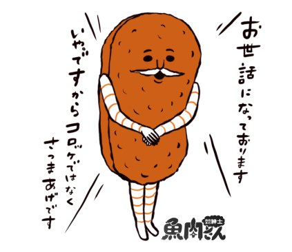 今日はこんな #魚肉さん の仲間 #さつまあげ大臣「お世話になっております」 #LINEスタンプ 01制作中!スタンプも販売中です→ https://t.co/3WAXEU2s3p #薩摩揚げ #お弁当 #おつまみ #ダイエット #クリエイターズスタンプ #illustration #linesticker