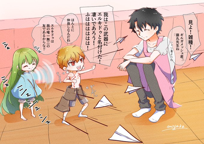 ギルくんとドゥちゃんから披露された遊びを見守る藤丸先生
