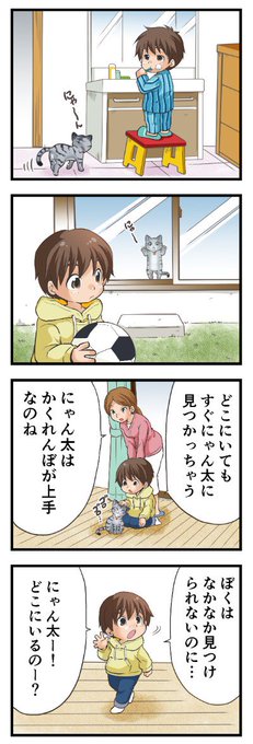 3匹の猫さんと暮らす漫画家の藤凪かおるさんの連載が始まります。アニメプロジェクト投票で一位だったキャラクターです。第一話は猫さんをお迎えをした日の出来事。少しずつ心を開いていくにゃん太を見守ってください🐱