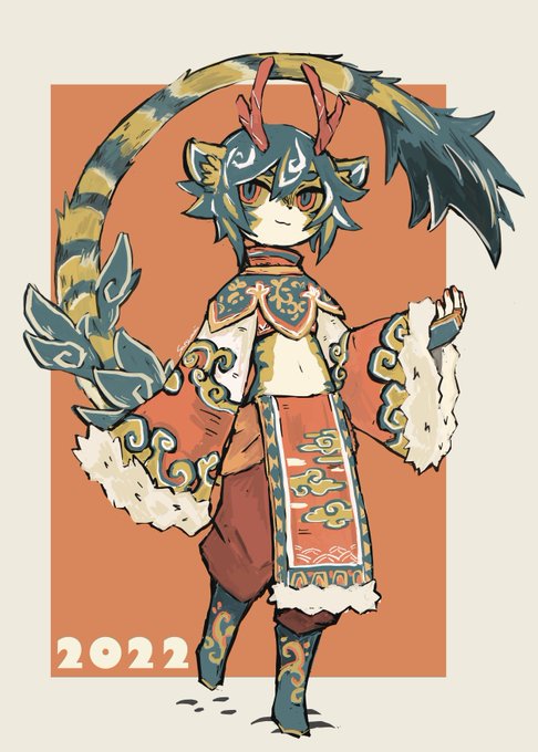 良いお年を 虎年吉祥!因為比較晚發,就祝大家開工大吉吧! #獣耳 #オリジナル #artwork #イラスト #寅年 #ChineseNewYear2022