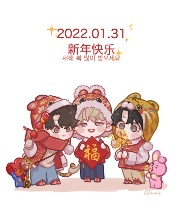 新年快乐,虎年吉祥🥳🎉🎉#btsfanart #MINYOONGI #TAEHYUNG #JUNGKOOK